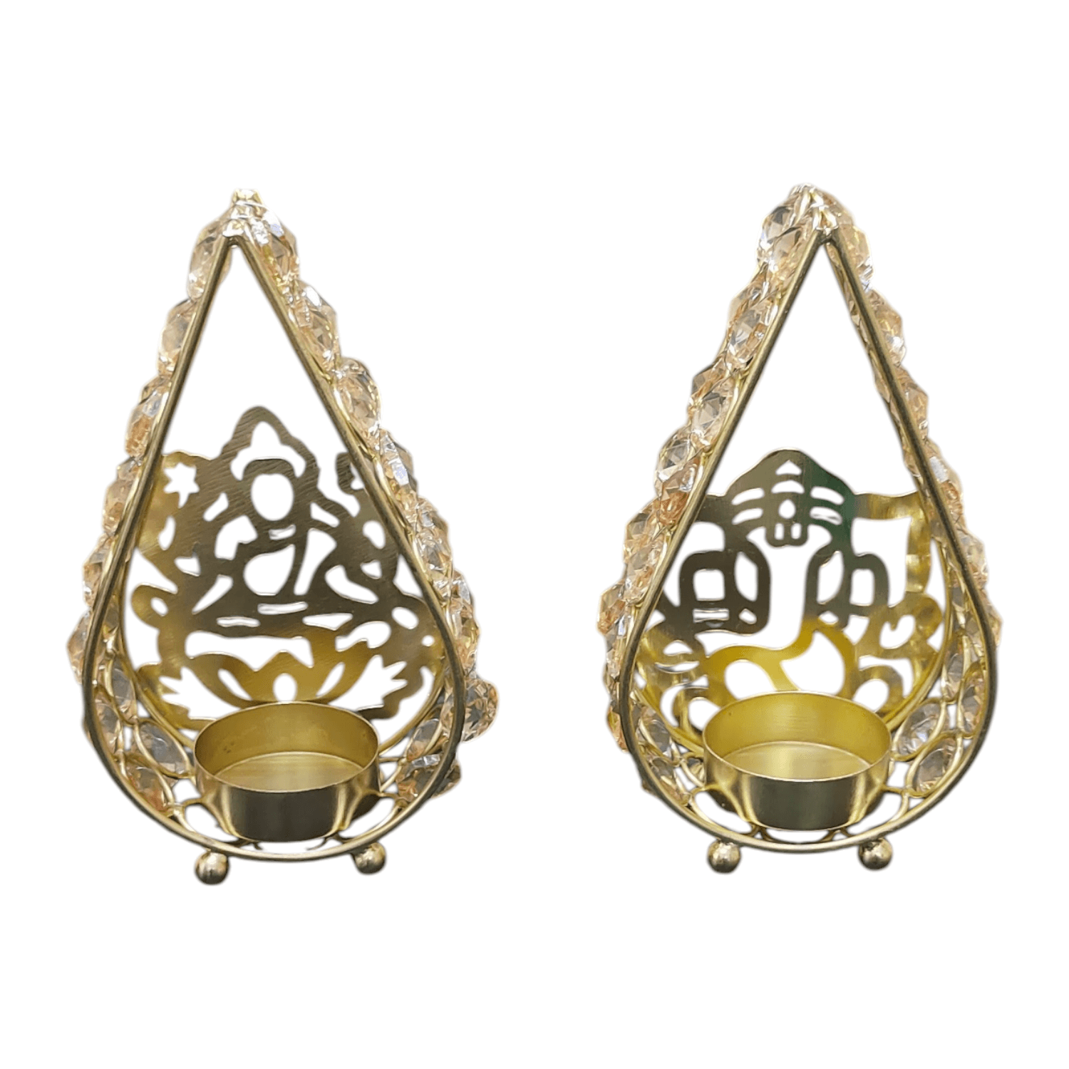 Gifts Byte Crystal Teardrop Lakshmi-Ganesha Tealight Holders (Set of 2)