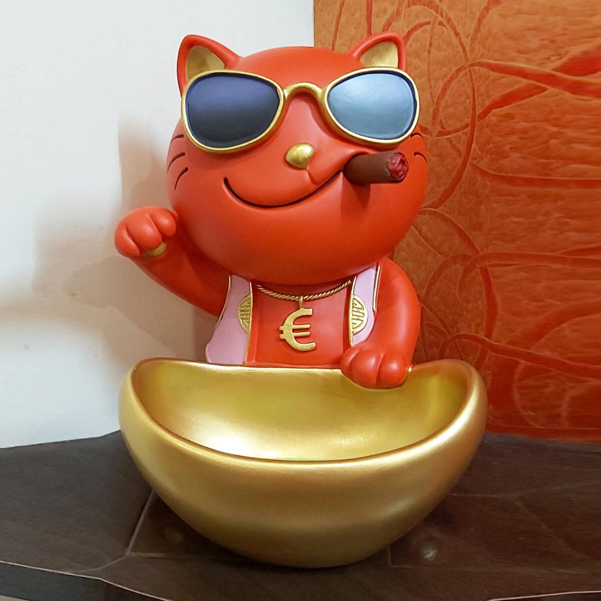 Bulldog with Cigar Decorative Sculpture Figurine Container Key Candy Storage. Geometric surface treatment and Eco friendly natural Resin Material make it a perfect statues for modern home decor, Office desk decor, Personal collection.