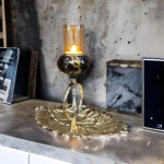 Gifts Byte Metal Leaf Tealight Candle Stand with Latkan and Glass Holder for Diwali Decoration